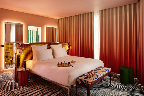 One of the 120 bedrooms at the Mama Shelter Dijon. Inside each one are a series of discreet but unmistakable nods to winemaking region of Burgundy. Both images courtesy Mama Shelter