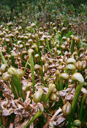 The Darlingtonia State Natural Site is located eight miles north of Florence. The carnivorous plants grow like hydras through the earth, with cobra-like heads and glassy throats down which their prey will slide. Their skin is thin and turns luminous green when light shines through, and blossoms with red and yellow flowers in the spring.